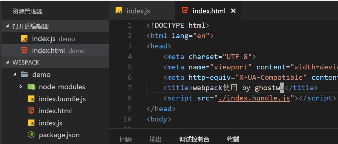 第四步、新建一个index.html文件,然后引入index.bundle.js 就能使用这个js文件了