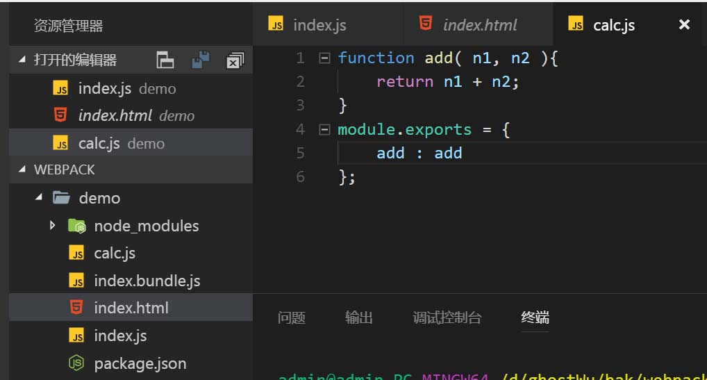 另外在当前目录下面新建一个calc.js文件,然后在用module.exports导出