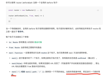 最近在使用vue-router的beforeEach钩子时候遇到了一个问题,就是在beforeEach()中设置好判断条件后出现了无限循环的问题