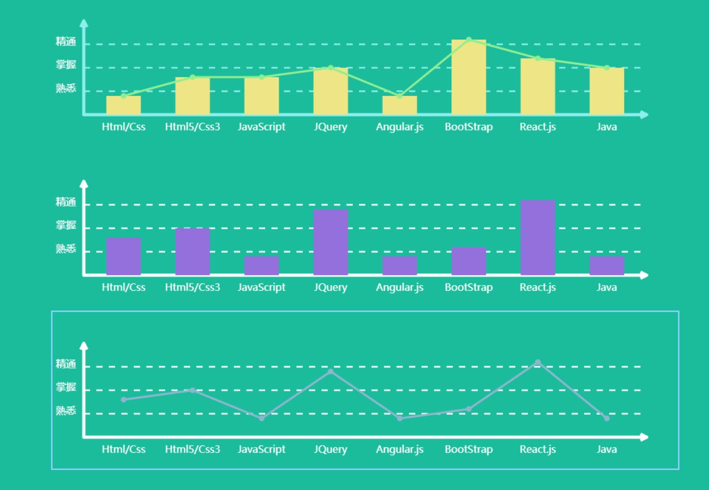 3.可以自由定义折现颜色,坐标颜色,柱形图颜色 和canvas边框颜色,当然边框你也可以选择要或者不要