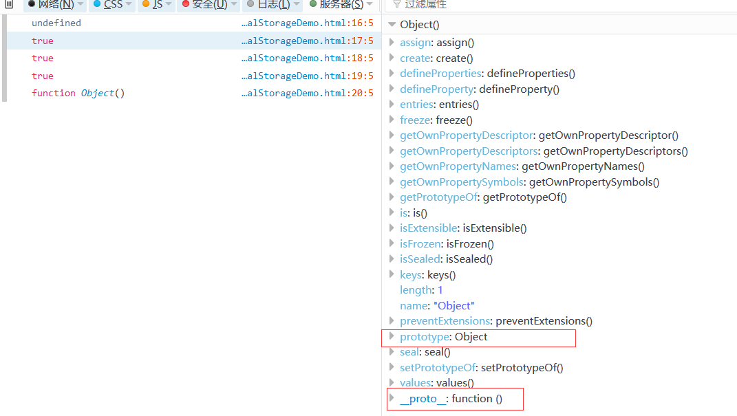 3、demo的原型prototype的__proto__指向Object的原型prototype,而Object的原型prototyped的__proto__指向null;