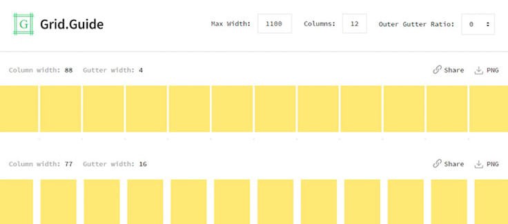首先我要介绍的是Grid.Guide,一款免费的网页应用,能让你在线生成栅格。这个小巧的应用能让你通过自定义间距和列数建立你自己的栅格方案。