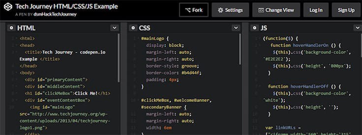 但即使有这么多种选择,我不得不说CodePen是最棒的。它启动迅速,十分可靠,易于启动且当你改动代码时会自动更新。
