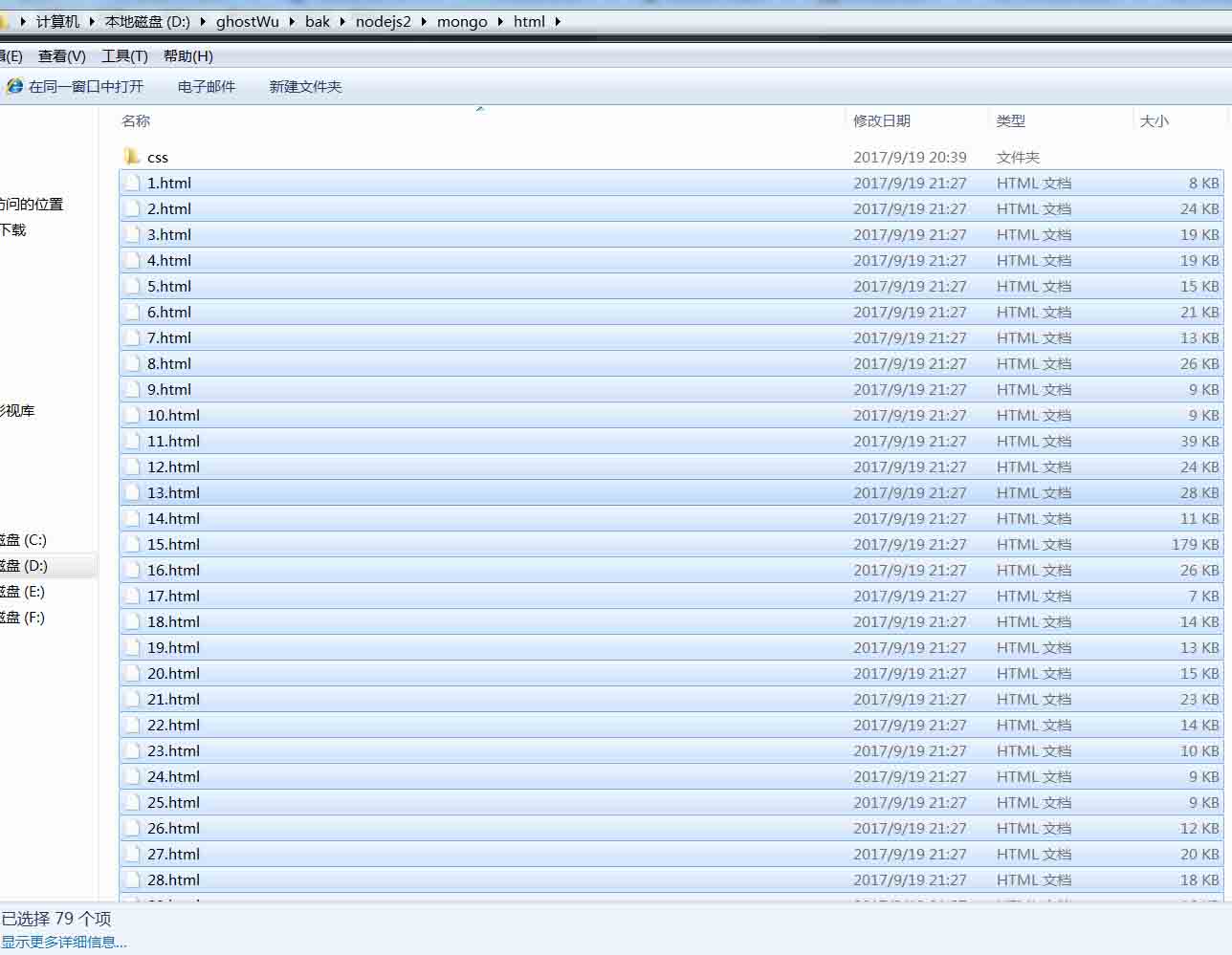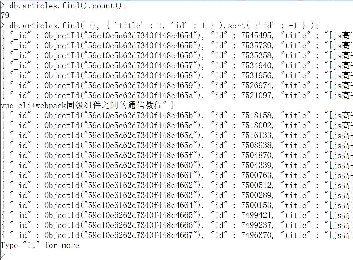 那么我选择的数据库是mongodb,为什么用这个数据库,因为这个数据库是基于集合,数据的操作基本是json,与dom模块cheerio具有非常大的亲和力,cheerio处理过滤出来的数据,可以直接插入mongodb,不需要经过任何的处理,非常的便捷,当然跟node.js的亲和力那就不用说了,更重要的是,性能很棒。这篇文章我就不具体写mongodb的基本用法,到时候会另起文章从0开始写mongodb基本常用用法.先看下入库的效果与生成静态文件的效果: