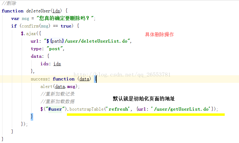 url: "${path}/user/deleteUserList.do",