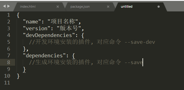 在项目根目录下创建package.json文件,文件内容如下