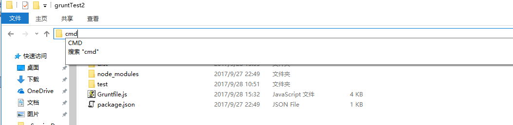 我们打开我们的项目文件夹,在路径栏中输入cmd然后回车