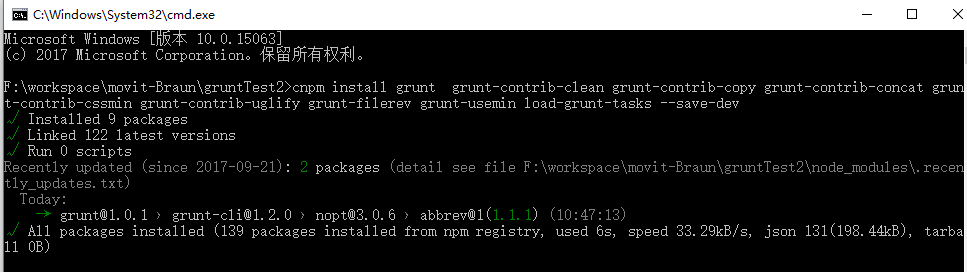 cnpm install grunt grunt-contrib-clean grunt-contrib-copy grunt-contrib-concat grunt-contrib-cssmin grunt-contrib-uglify grunt-filerev grunt-usemin load-grunt-tasks --save-dev