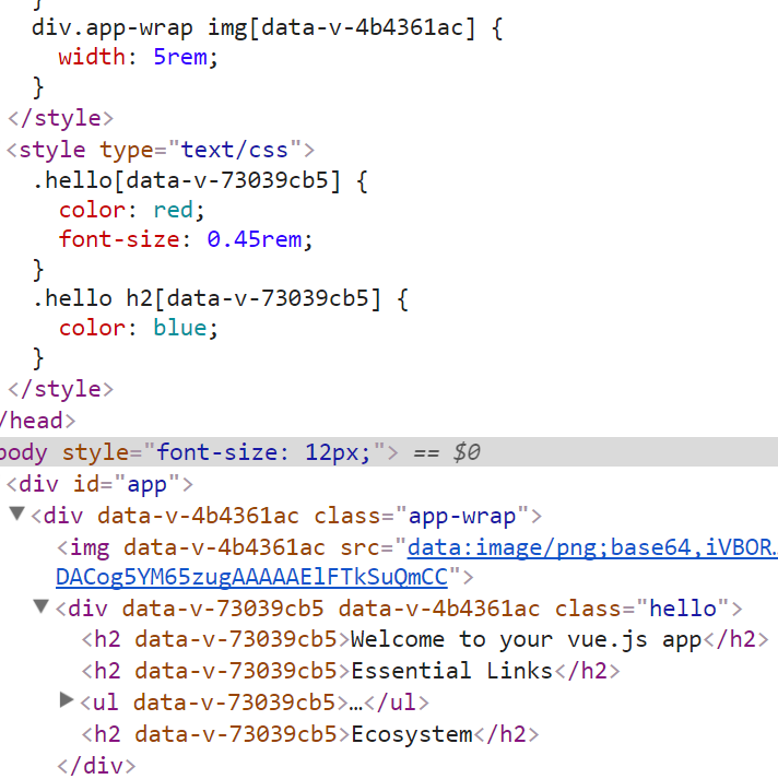 补充:通过下面的代码就不难理解问什么scoped可以隔离作用域了。 即给不同组件的所有html添加一个属性,然后在css中使用属性选择器来防止作用域的污染,实在聪明!!!