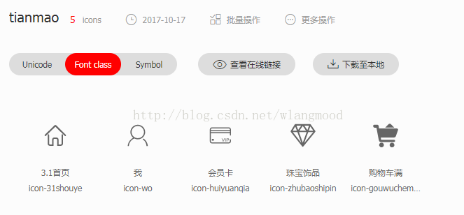 引入图标,使用<i class="icon iconfont icon-wo"></i>区别在第三个class来引入对应图标