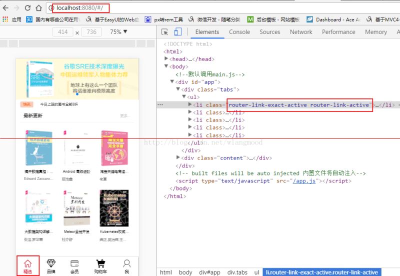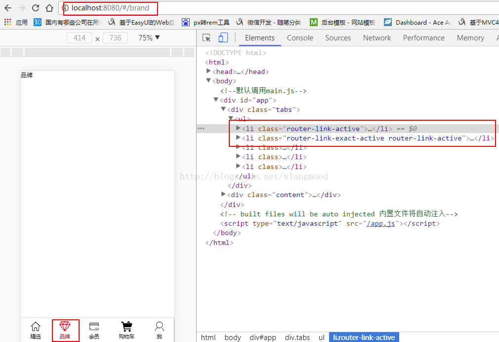 点击品牌时展示如下:Home的Tab仍然设置了routet-link-activeCSS类名,如果设置routet-link-active样式颜色为红色,精选就会一直保持红色