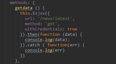 然后在要调用的方法或是钩子中请求,$ajax就是上面注册的axios,如果想直接用axios不想设置prototype也可以直接按官方的文档来写