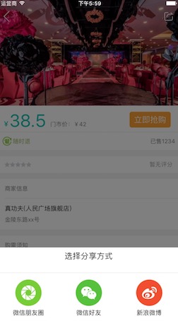 在很多App中都会涉及到分享,React Native提供了Modal组件用来实现一些模态弹窗,例如加载进度框,分享弹框等。使用Modal搭建分析的效果如下: