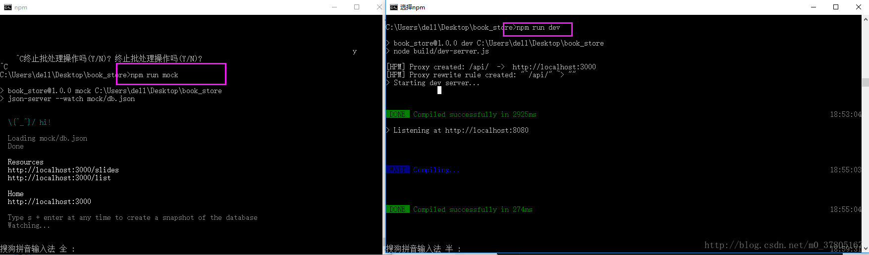 如果执行npm run mockdev 时一直处于监听db.json的状态,建议使用两条命令分开在两个命令行中执行,可避免