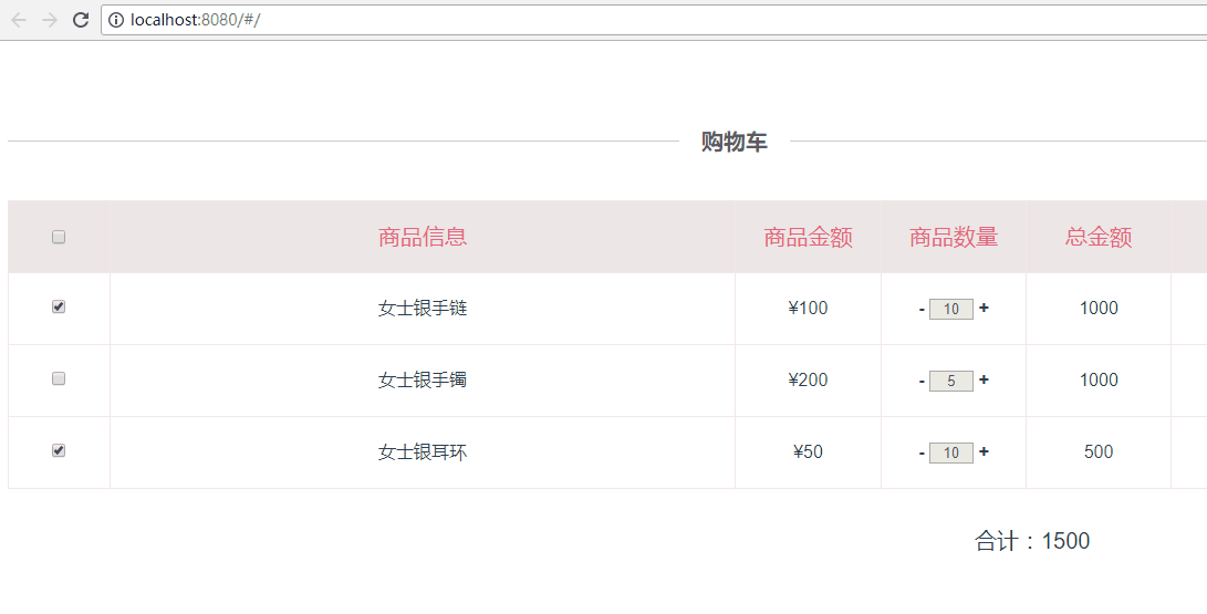 这个demo,是小编基于之前的 vue2.0在table中实现全选和反选 文章进行更新后的demo,主要功能呢,是仿照淘宝页面的结算购物车商品时自动算出合计价格的页面,具体页面效果请看下面的动图:(如果大家发现有什么问题请及时提出帮小颖改正错误呦,谢谢啦嘻嘻)
