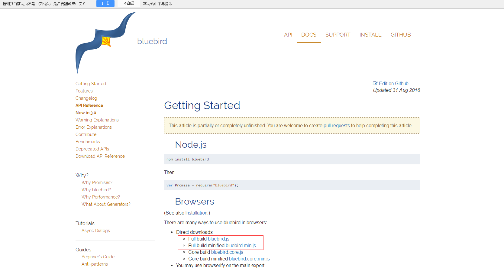 进入bluebird官网下载: