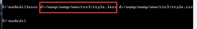 如果要编译d盘下的文件,比如d:/wamp/wamp/www/css3/style.less文件,可以直接这样编译