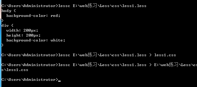 2、先在控制台编译一遍:lessc 文件路径\文件名.less(可省略);