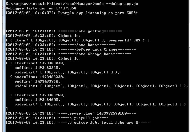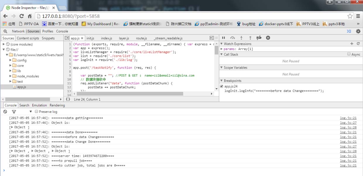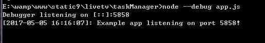 5.cmd进到项目文件app.js执行入口文件:node --debug app.js