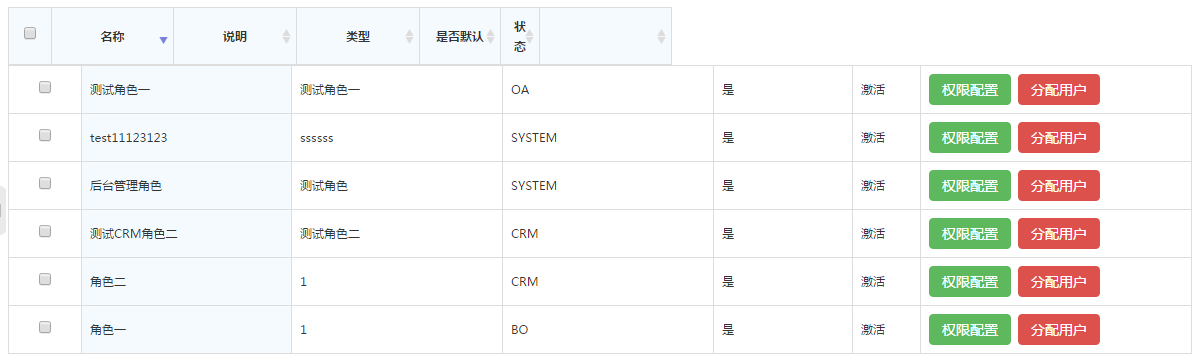 <table id="example" class="table table-border table-bordered table-bg table-hover table-sort"> <thead> <tr class="text-c"> <th width="25"> <input type="checkbox" name="checkAll" class="checkall" onclick="checkedClean();"> </th> <th width="100">名称</th> <th width="100">说明</th> <th width="100">类型</th> <th width="60">是否默认</th> <th width="20">状态</th> <th width="100"></th> </thead> <tbody> </tbody> </table>