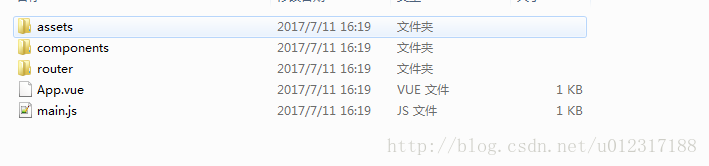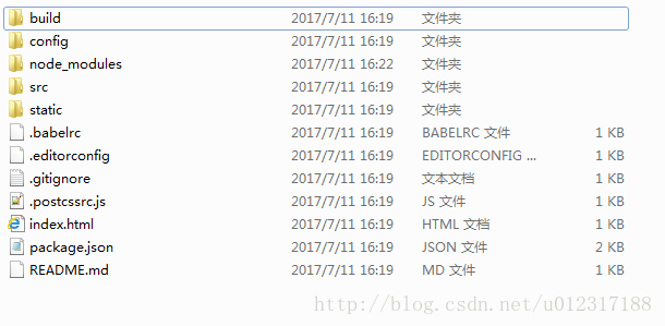 利用node和npm环境我们可以很快的搭建一个vue环境。具体步骤,请看上一篇博客。搭建完成后,我们可以看到生成的文件夹中包括如下文件: