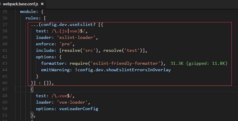 很多人说关闭eslint检查的方式是注释掉 build/webpack.base.conf.js 文件中关于eslint配置的这一部分。不知道是否因为Vue-cli 版本更新的缘故,在实际操作中,这样是行不通的。