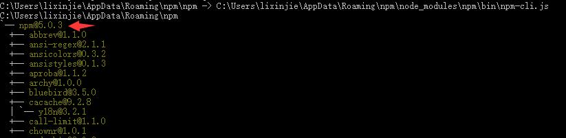 红色箭头所指表示安装的新的 npm 的版本号,下面是一些包文件。