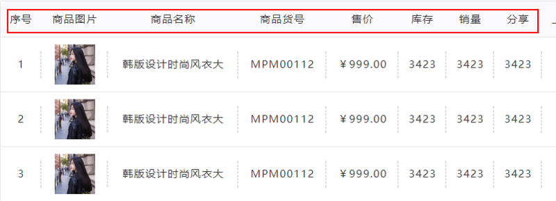 const tHeader = ['商品名称','商品货号','售价','库存','销量','分享',];