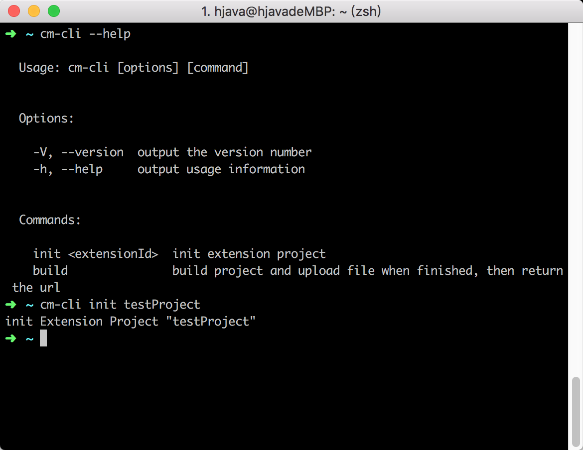 如果你发布了你的脚手架,那么在其他用户使用命令npm install -g cm-cli之后,便可以在全局下使用你的脚手架了。