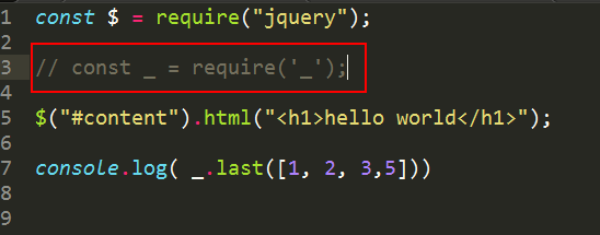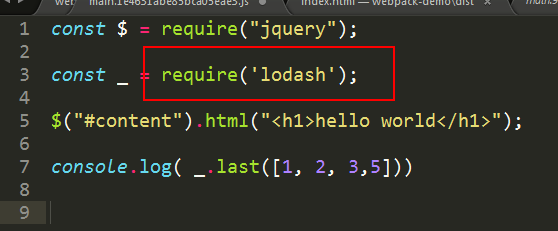 ok,记得要将之前的覆盖掉,替换成下面的require,因为在externals中我们规范的commmonjs规范为lodash