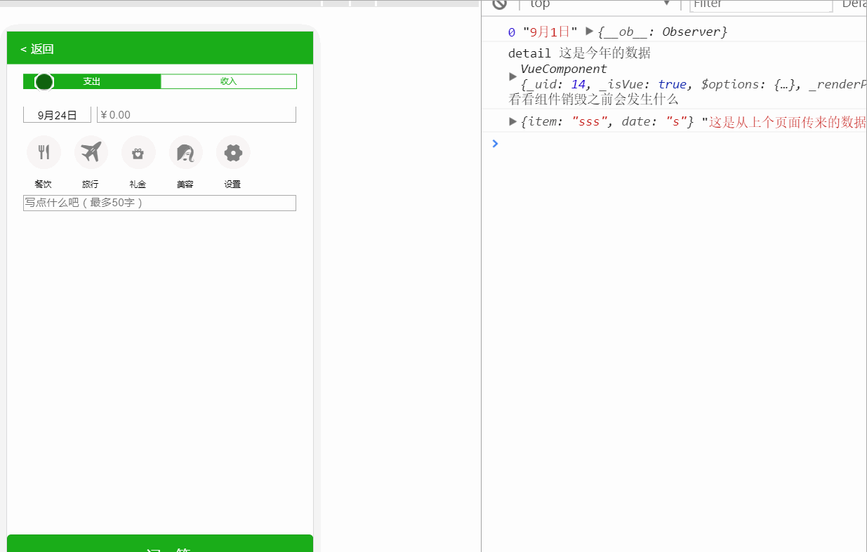 不知道你有没有发现,就是我第一次进去list页面的时候,我随便点击一下list下的任何一个item,控制台没有输出。但是当我第二次再点击触发事件的时候,就会输出一个测试数据。再一次进去点击,就输出两个数据。。。依次增加了。(控制台上那个“这是从上个页面传来的数据”就是测试数据)