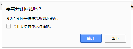 e.returnValue=("确定离开当前页面吗?");