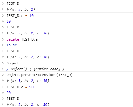 2) Object.preventExtensions: 该方法让一个对象变的不可扩展,也就是永远不能再添加新的属性。 查看详情