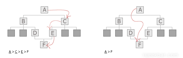 下图是一个基于路径的面包屑导航,展示了到达相同页面的不同路径。