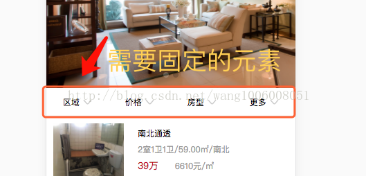 最近写了一个VUE的web app项目,需要实现某个部位吸顶的效果。即,页面往上滑动,刚好到达该部位时,该部分,固定在顶部显示。