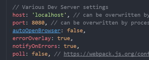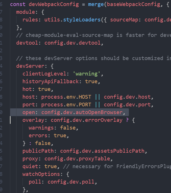 回到起点,在最新版本vue-cli的配置中浏览器服务都在webpack-dev-server 这个插件中,那我们就其在webpack.dev.conf.js进行修改