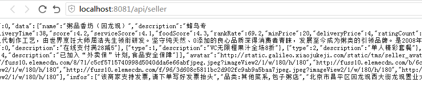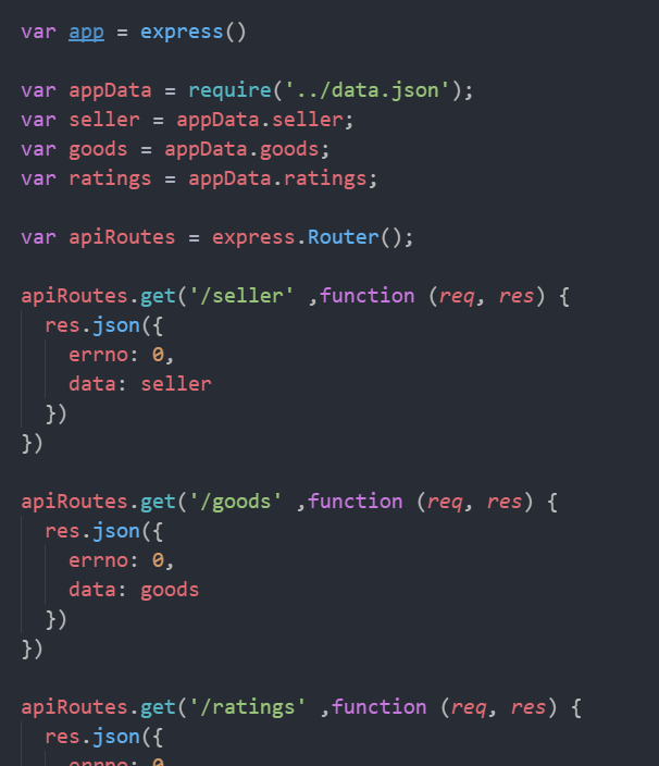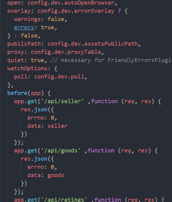 在此之前我们理解下饿了吗app的接口的设置原理,由于数据都是直接从data.json这个文件获取的,所以呢,我们要模拟mock做个接口。但是在饿了吗APP的设置中 它是直接启动服务的时候把接口给做好了,这也是为什么我们可以直接访问其/api/seller有对应数据