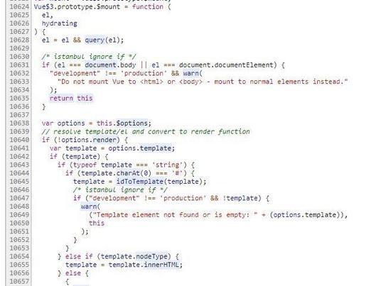 3.生成vnode,经过patch,把vnode更新到dom上。 由于篇幅有限,这里先说前两步,第三步下篇说。 好,下面具体的说。首先,我们来到 $mount 函数,如下图: