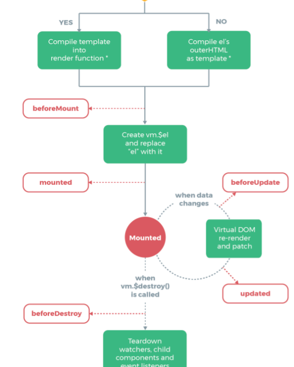 下面是vue官方给出的vue生命周期(部分),正如官方所说的一样,一开始不必先理解,不过随这你的学习与使用,他的参考价值会越来越高。