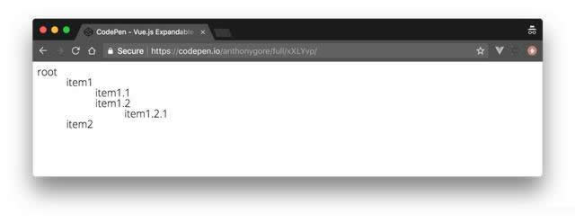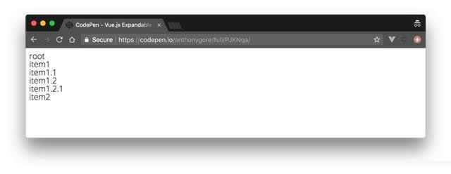 <div id="app"> <tree-menu :label="tree.label" :nodes="tree.nodes" :depth="0" ></tree-menu> </div>
