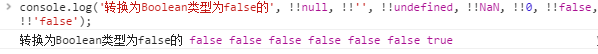 (2) 转换为 Boolean类型为 false 的有:null,0,'',undefined,NaN,false