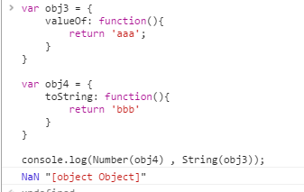 3. 对象通过valueOf方法,把自己转换成数字,通过toString方法,把自己转换成字符串。
