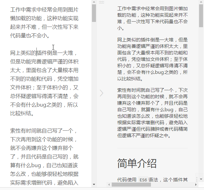 本文不是阐述如何从 0 实现这种效果的(后续 很可能 会单出文章,),抛开其他,单看页面主体中左右两个容器元素,即 markdown 输入框元素和预览显示框元素