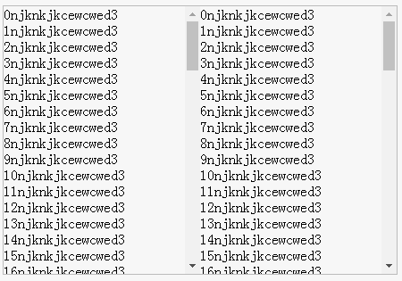 再向 .left 和 .right 元素中塞入足够的内容,让二者出现滚动条,就是下面这种效果: