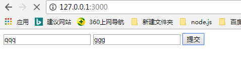 //form.ejs <!doctype html> <html lang="en"> <head> <meta charset="UTF-8"> <title></title> </head> <body> <form action="#" method="post"> <input type="text" name="name"/> <input type="text" name="age"/> <input type="submit"/> </form> </body> </html>