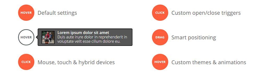 您可以根据实际的用户行为自定义提示特效,如悬停、点击、焦点触发等。您还可以自定义他们的样式和动画效果,并且支持 Ajax 请求回调方法。
