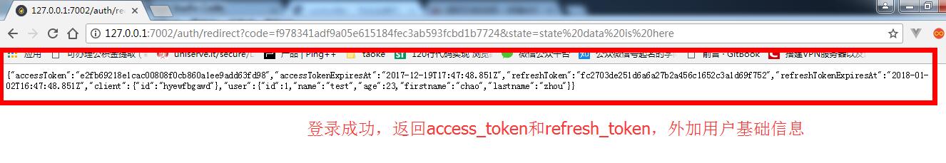 这里调用app.oAuth2Server.authorize()时,插件会自动执行重定向操作,首先是重定向到客户端指定地址,客户端拿到code和state后,再去授权层获取token: