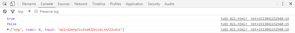 | exec | 检索字符串中指定的值。返回找到的值,并确定其位置。 | 1 | 4 |