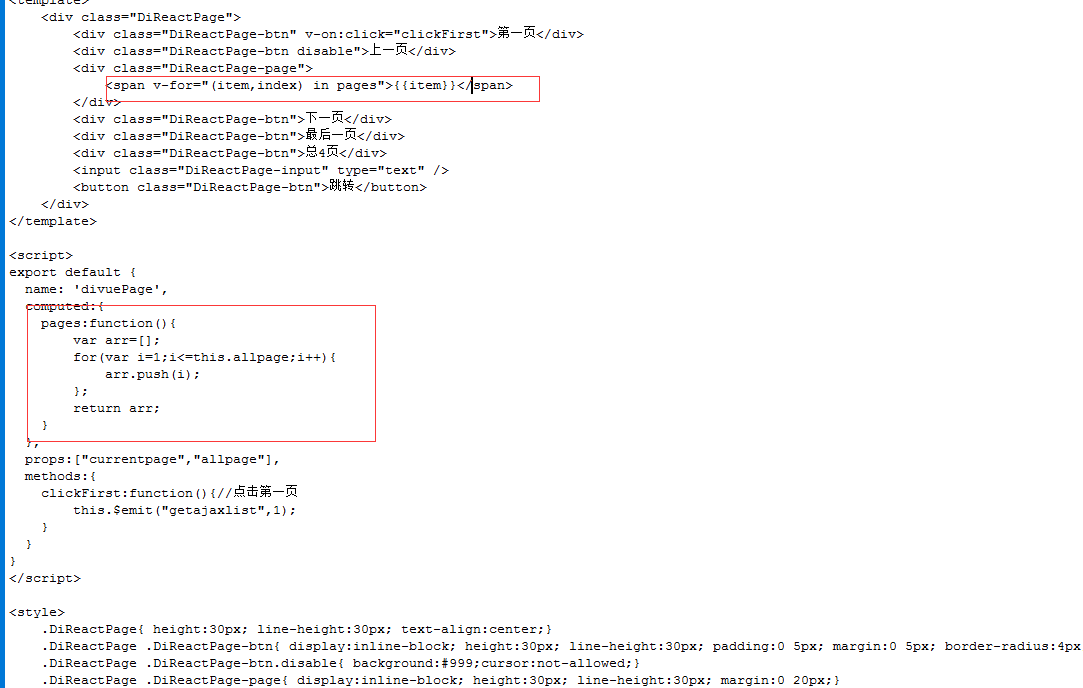 我们要给当前页加一个类名标识,已经获取当前的页数了,我们加一个判断就可以了,在v-for中: