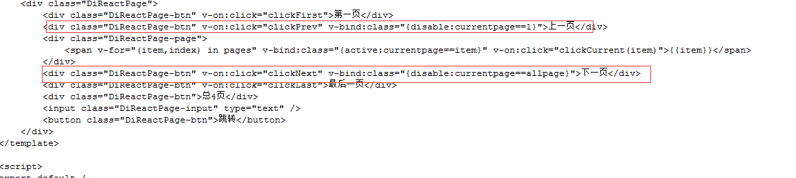 <div class="DiReactPage-btn" v-on:click="clickPrev" v-bind:class="{disable:currentpage==1}">上一页</div>